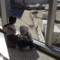 And we were off again. Baby Boy, M and I flew to back to the States to celebrate Hannukah with family. Flying with a 6 month old was good and uneventful. Baby Boy nursed during take-off, and then we passed him back and forth until we had arrived.